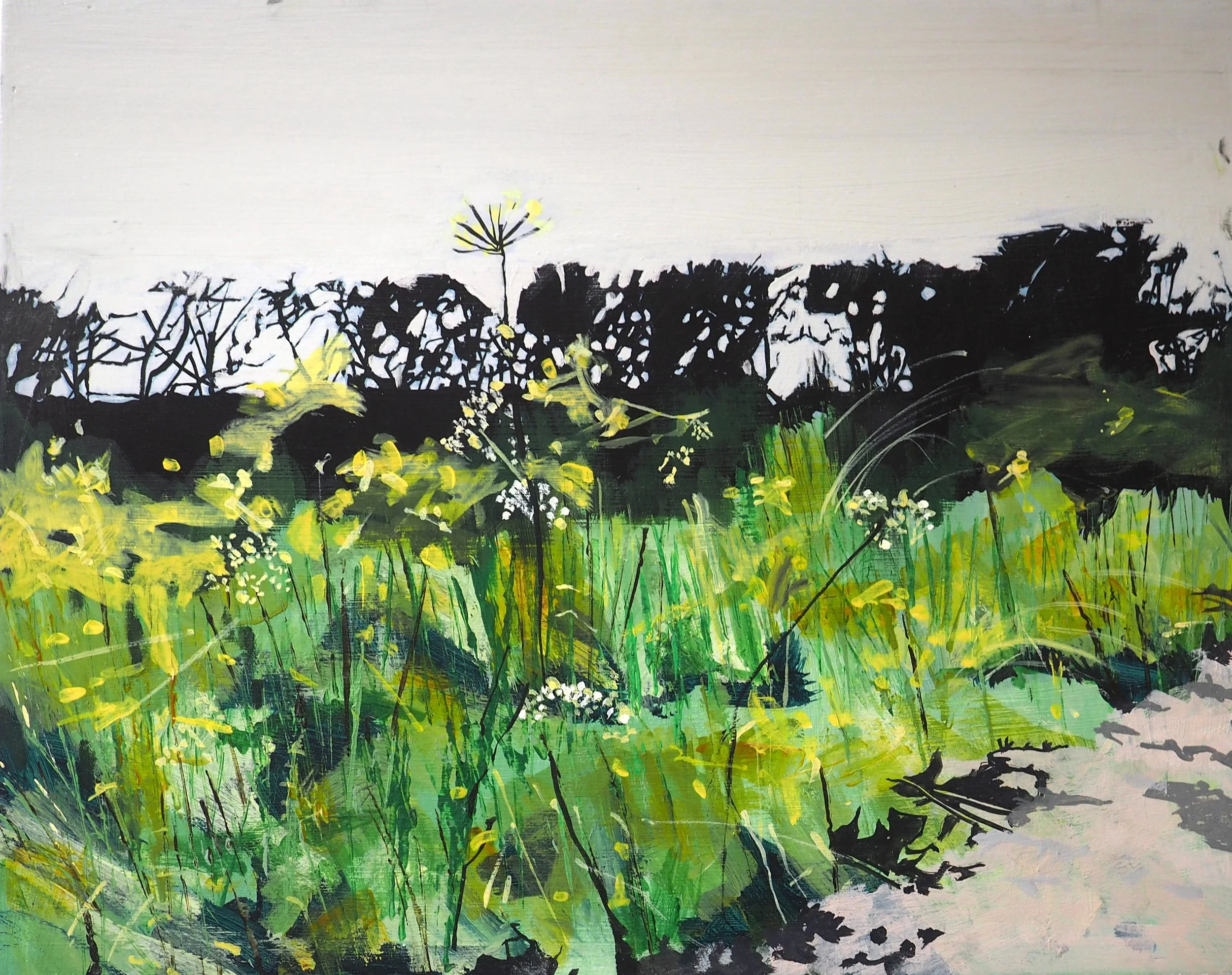 Continuing the Hedgerow series I’ve been searching for ways in which I can ‘clean up’ or focus on a slightly more graphic image-This is an early response to making decisions about balancing detail against big planes of colour. The latest ‘sibling’ piece to this was exhibited in the show at The Willow Gallery', Oswestry